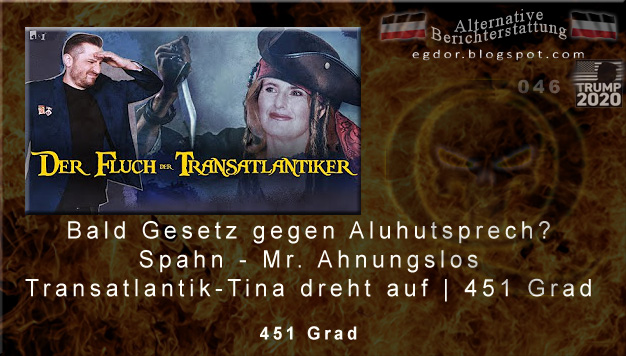 Heute in der Sendung: Justizministerin Lambrecht im Kampf gegen Verschwörungstheorien. Wir sprechen einmal über dieses überraschend aufgetauchte COVID-19 und die Mitglieder der Atlantikbrücke scheinen es irgendwie nicht so gut mit Russland zu meinen. Viel Spaß bei 451 Grad. I AM THE LAW! Wer glaubte, dass diese ikonische Selbstbezeichnung schon aus dem Mund von Sylvester Stallone oder Karl Urban abnorm cool klingt, der hat wohl noch nie Christine Lambrecht gesehen, wie sie sich alleine gegen Theorien von Nord Stream 2-Gesetzlosen, abgesehen von Echsenmenschen und Blutsaugern stellt. Die fleischgewordene Justitia sagt jeglichen Verschwörungstheorien den Kampf an. Doch leider scheinen die drei unverzichtbaren Utensilien: Augenbinde, Waage und Richtschwert ausgetauscht worden zu sein – gegen eine Brille und jede Menge Moneten. Ach, was soll es auch. Unter der Augenbinde ist es dunkel, so eine Waage rostet und dieses blöde Schwert ist schwer und noch dazu stumpf. Lieber den Alumützen-Theorien mit viel Geld und Entschlossenheit entgegentreten. So hat jeder seins. Einer kommentiert Kommentare und eine andere lässt das Geld sprechen. Kommunikation ist super! Habt ihr in den deutschen Mainstreammedien zufälligerweise schon einmal was von COVID-19 gehört? Nein? Wie sieht es mit Corona aus? Auch nicht? Also eigentlich ist das ja schon ein zwölf Jahre alter Aluhut. Aber gut. Wir geben euch gerne eine kurze Zusammenfassung: Also, das ist so ein Virus und gegen jedes Virus benötigt man einen Impfstoff. Das sollte klar sein, oder? Bei solch einem komplizierten Thema gibt es natürlich auch ganz viele Meinungen. Der Grünen-Abgeordnete Konstantin von Notz hat beispielsweise eine präsent. Es gibt auch andere Leute, wie so einen gewissen Jens Spahn, der zwar jemanden wie Sucharit Bhakdi nicht kennen will, aber mit dem britischen Pharmakonzern AstraZeneca jede Menge Geld machen möchte. Aber dazu erzählt euch unser Arthur in der Sendung ja mehr. Und ganz wichtig ist, dass ein Virus ja gefährlich ist und man sich damit bei anderen Menschen anstecken kann. Um diese Gefahr zu minimieren, gibt es Regeln. Doch manchmal könnte man das Gefühl bekommen, dass keiner bei all diesen Vorschriften so richtig durchsieht. Stichwort: Maskenpflicht. Die Regel sagt: Trage im öffentlichen Raum eine Maske. Dr. Ines Kappstein sagt im Thieme-Verlag: Wir brauchen im öffentlichen Raum keine Masken zu tragen. Na was denn nun? Wir sind verwirrt und verstehen, warum es mittlerweile so viele Menschen gibt, die das Gefühl haben, dass an dieser Corona-Sache irgendetwas faul sein muss. Besonders wenn solche Regeln mit Gewalt durchgedrückt werden wollen. Wo ist der ARD-Faktencheck, wenn man mal einen benötigt?