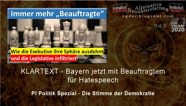 Bayern beruft als erstes Bundesland einen Beauftragten gegen Hassrede. Kontrolle und Denunziation werden also jetzt ganz offiziell institutionalisiert. Wir wollen hier nicht fragen (obwohl sich diese Frage unmittelbar aufdrängt), was das über die Regierung und für die Kanzler-Ambitionen von Markus Söder aussagt. Wir zeigen in diesem Video vielmehr, wie die Bundes- (und analog auch die Landesregierungen) ihre Einfluss-Sphäre, die sie ohnehin ständig ausbauen, auch mit Hilfe der Beauftragten expandieren, wie sie dabei parlamentarische Kapazitäten anzapfen und an sich binden, damit auch Nachwuchs-Akademien für Politiker betreiben und ganz nebenbei die Gewaltenteilung weiter aushöhlen ... Hier die offizielle Liste der aktuellen "Beauftragten der Bundesregierung"