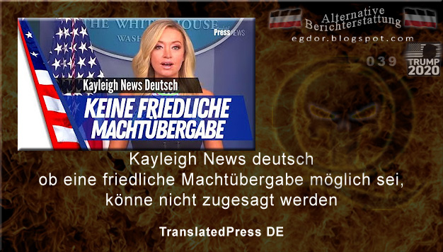 Kayleigh News deutsch - ob eine friedliche Machtübergabe möglich sei, könne nicht zugesagt werden. Bei der offiziellen Trauerfeier der Richterin Ruth Bader Ginsburg wurde Präsident Trump mit Vote Him Out Sprechchören konfrontiert. Weiterhin äußert sich Kayleigh zu den Aussagen des Präsidenten, dass er nicht sicher ist ob eine friedliche Machtübergabe, im Falle seiner Niederlage möglich sei.