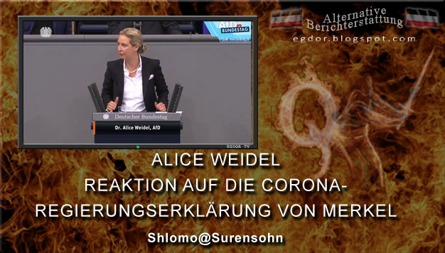 Die stellvertretende AfD-Bundessprecherin und Fraktionsvorsitzende im Bundestag, Dr. Alice Weidel, kritisiert scharf die Bundesregierung und die Ministerpräsidenten für ihren willkürlichen Umgang mit der Coronakrise. Vermeidbare wirtschaftliche, soziale und psychische "Kollateralschäden" werden zwecks Selbst-PR billigend in Kauf genommen, das Vorgehen und die Maßnahmen sind klar verfassungswidrig.