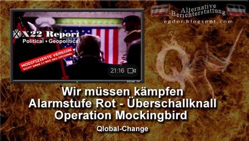 Der [DS] kann nirgendwo hinlaufen, sich nirgendwo verstecken und es wird keine Deals geben. Die Wahrheit wird bald auf die Welt losgelassen. Macht Euch bereit für den Überschallknall. Der Monat Oktober wird rot sein, Alarmstufe rot, der rote Oktober. Die Jagd geht los. Es ist Zeit für die Patrioten, für die Wahrheit zu kämpfen. Operation Spottdrossel wird scheitern. Ihre Zeit läuft ab.
