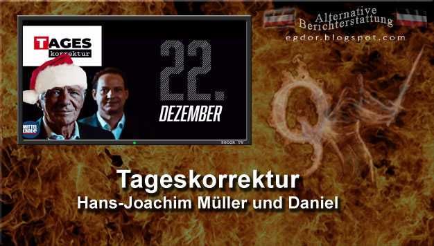 Als im März 2020 die Nachrichten den Alltag in Deutschland übernahmen, startete die Tageskorrektur ihre tägliche Aufklärung. Seit 21.03.2020 stehen „Hajo und Daniel“ den Menschen zur Seite. Unermüdlich und unvergleichlich schauen Sie genau hin, was die Medien tatsächlich berichten und erklären die Hintergründe im (geo)politischen Kontext.