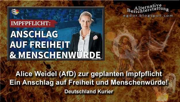Klartext der Vorsitzenden der AfD-Fraktion im Deutschen Bundestag, Alice Weidel, im Rahmen der heutigen Generaldebatte zur geplanten Einführung der totalitären Corona-Impfpflicht: „Die Impfpflicht ist ein autoritärer Amoklauf gegen die Grundfesten unserer demokratischen und rechtsstaatlichen Ordnung!“