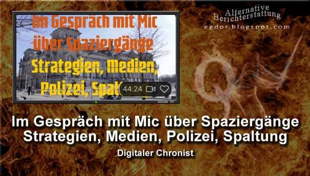 Liebe Zuschauer, mein heutiger Gesprächspartner Mic, der in München zuletzt die Spaziergänge mit der Kamera journalistisch begleitet hat, und ich sprechen über die weitere Strategie, Außendarstellung, das Verhalten der Polizei und was wir gegen die Spaltung tun können.