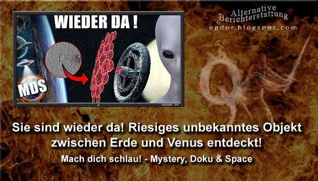 Sie sind wieder da! Ufologen sind sich sicher: Die neuesten Aufnahmen der NASA Stereo Sonden an der Sonne haben während des Vorbeiflugs des Leonard Kometen ein riesiges unbekanntes Objekt zwischen Erde und Venus entdeckt und es auf Video festgehalten! Ein kreisrundes Objekt wie das Rad des Ezechiel und etwas das wie ein riesiger Fallschirm wirkt der sich zwischen Erde und Venus aufspannt. Und es ist nicht das erste Mal das riesige unbekannte Objekte von den Stereo NASA Sonden aufgenommen worden sind. Ihre Rückschlüsse? Sie sind wieder da! Doch wozu spannten sie diesen Schutzschirm zwischen Erde und Venus auf? Hat es was mit dem Kometen Leonard zu tun? Haben uns Aliens mit ihrem UFO beschützt?