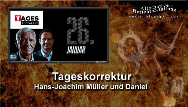 Als im März 2020 die Nachrichten den Alltag in Deutschland übernahmen, startete die Tageskorrektur ihre tägliche Aufklärung. Seit 21.03.2020 stehen „Hajo und Daniel“ den Menschen zur Seite. Unermüdlich und unvergleichlich schauen Sie genau hin, was die Medien tatsächlich berichten und erklären die Hintergründe im (geo)politischen Kontext.