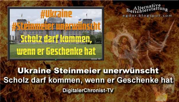 Liebe Zuschauer, Die ukrainische Regierung zieht knallhart durch und der deutsche Regierung scheint es zu gefallen. Die nächste Posse: Bundespräsident Steinmeier ist in Kiew unerwünscht, Scholz ist hingegen herzlich willkommen, um weitere Geschenke zu machen. Euer Thomas