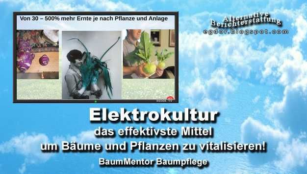 Elektrokultur, das effektivste Mittel um Bäume und Pflanzen zu vitalisieren! Das Verfahren der Elektrokultur ist seit über 100 Jahren bekannt, nur wurde es irgendwie aus den Köpfen verdrängt. Dabei ist es jeder Düngung und jeglicher anderweitigen Beeinflussung der Bäume und Pflanzen überlegen. Elektrokultur bedeutet durch physikalische Apparaturen natürliche Phänomene der Erde, wie Magnetismus und Ionenaustausch in der Luft, an die Pflanzen zu bringen und subtil zu verstärken bzw. zu lenken.