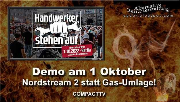 Die Handwerker stehen auf! Am 1. Oktober demonstrieren Sie in Berlin unter der Parole "Nord Stream 2 statt Gasumlage" für die Sicherung ihrer Existenz und den Frieden mit Russland. Ein kleiner Vorgeschmack war schon die Demonstration der Handwerker in Dessau am 28. August mit 4.000 Teilnehmern.