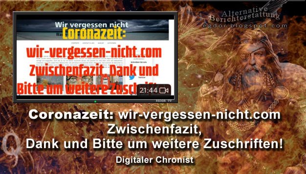 Liebe Zuschauer, Annette, die die Netzseite wir-vergessen-nicht.com maßgeblich pflegt und betreut, und ich berichten wie sich die Seite entwickelt hat und welches Leid sich in so vielen Geschichten offenbart, das in der Coronazeit entstanden ist. Wir bedanken uns bei den bisherigen Einsendern und bitten Euch, uns Eure Erlebnisse zu schreiben!