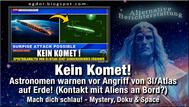3I/Atlas ist kein Komet - Das interstellare Objekt besitzt keine Staubwolke einen Schweif noch eine Koma – So die neueste Spektralanalyse von der uns Harvard Professor Avi Loeb und sein Team berichten, die uns zuvor schon vor einem Überraschungsangriff auf die Erde gewarnt haben - 3I/Atlas zeige damit eine weitere Eigenschaft die ihn zu einem außerirdischen Raumschiff machen – ein riesiges UFO oder eine Alien Sonde die im November oder Dezember 2025 eine Kehrtwende und auf die Erde zusteuern könnte – eine Warnung vor einer Alien Invasion - Ein Dokument behauptet gar dass man schon Kontakt mir Aliens an Bord von 3I/Atlas besäße.
