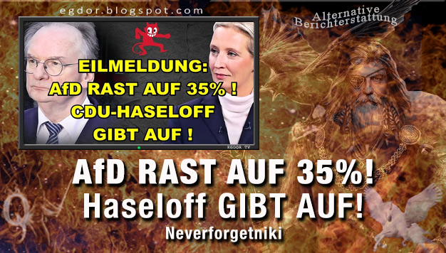 AfD rast auf 35%, Haseloff gibt auf! Hat Reiner Haseloff von der CDU verstanden, dass er gegen die AfD verlieren wird? Sein Rückzug macht den Weg frei für den ersten Ministerpräsidenten der AfD. In Sachsen steht die AfD schon bei 35%... Ist die absolute Mehrheit auch in Sachsen-Anhalt nah?